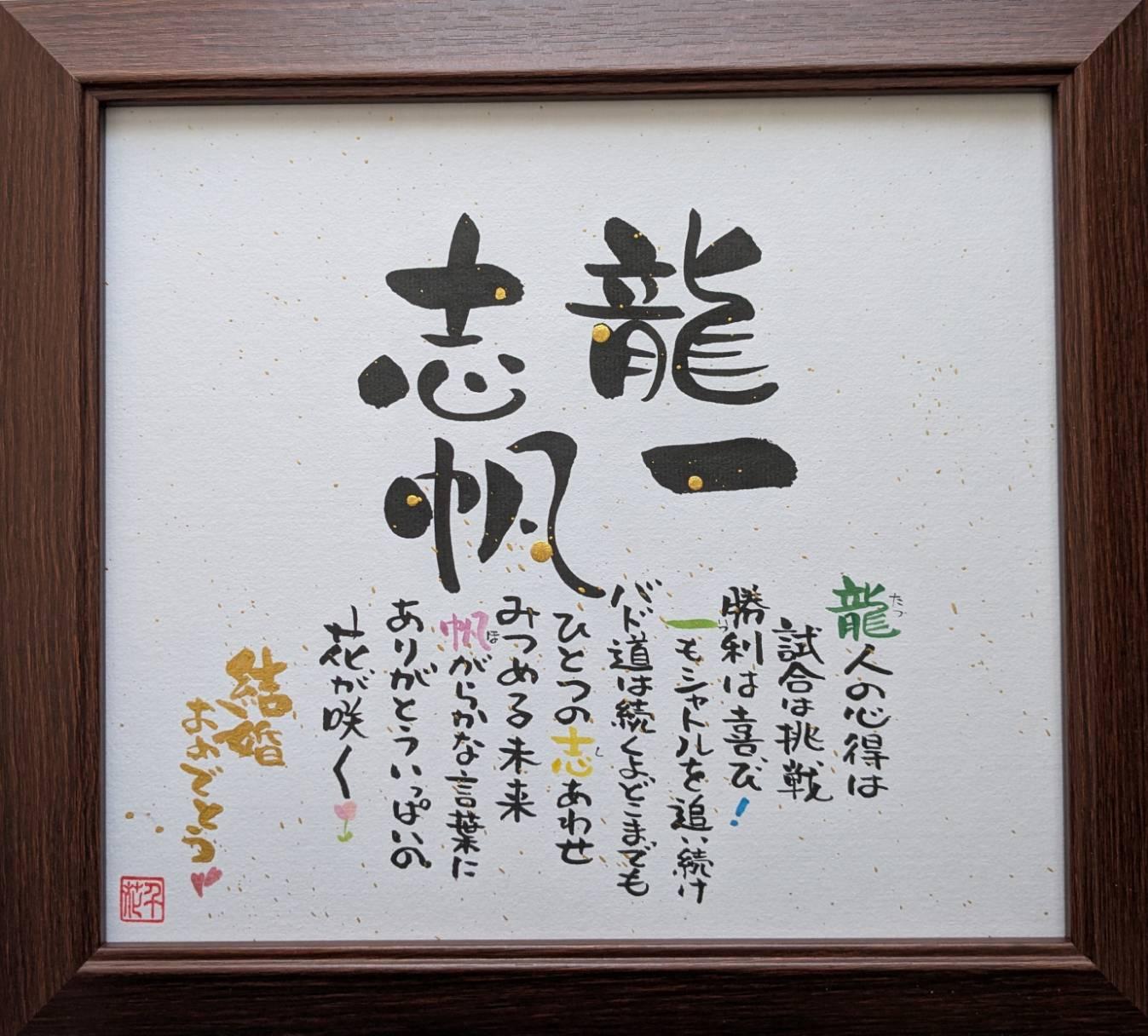 温かみのある似顔絵と、心を込めて書かれた名前が一つになったコラボ作品です。世界に一つだけのオリジナルアートとして、特別な人へのプレゼントや、人生の節目にふさわしい記念品としてどうぞ。 |